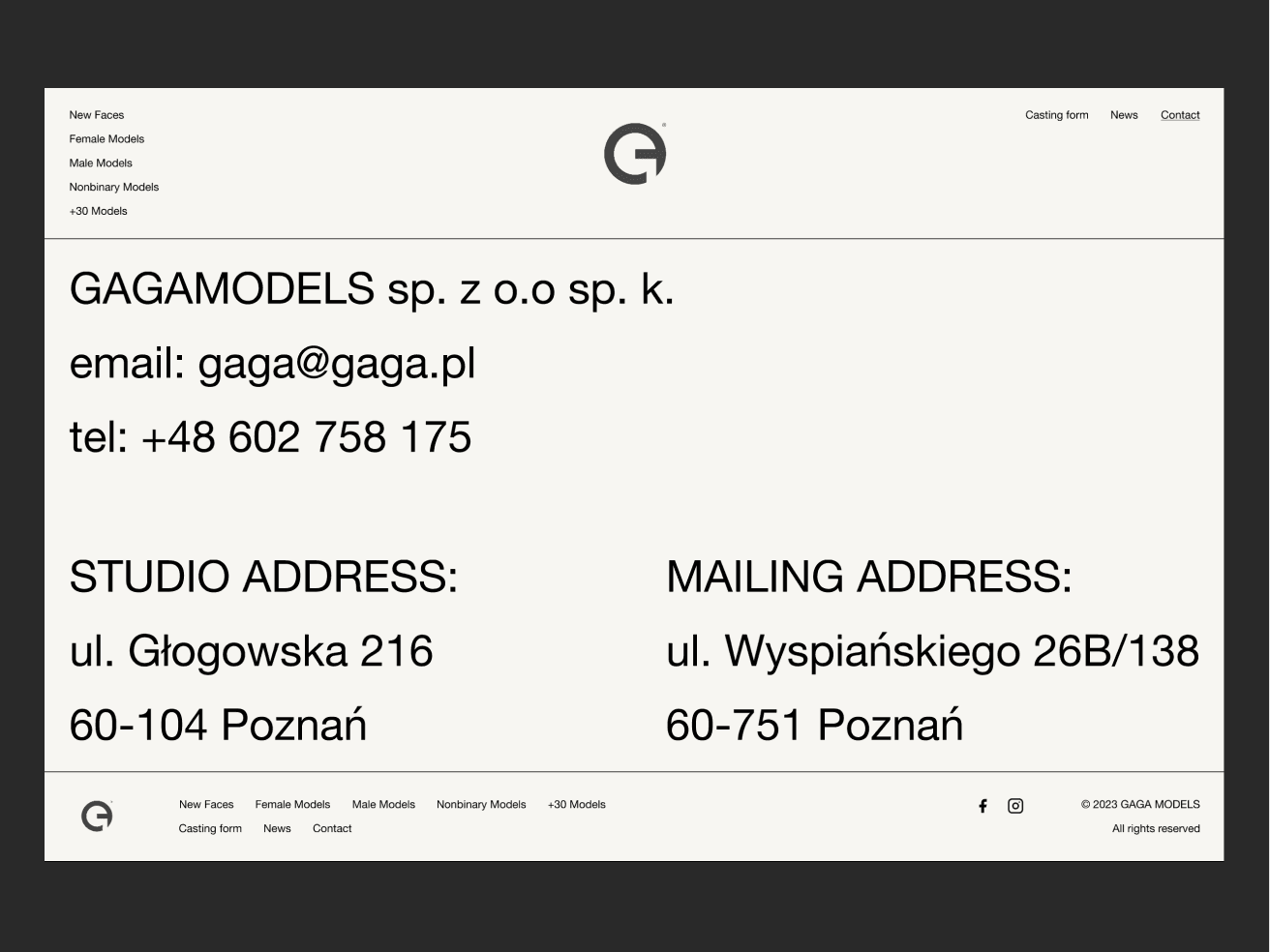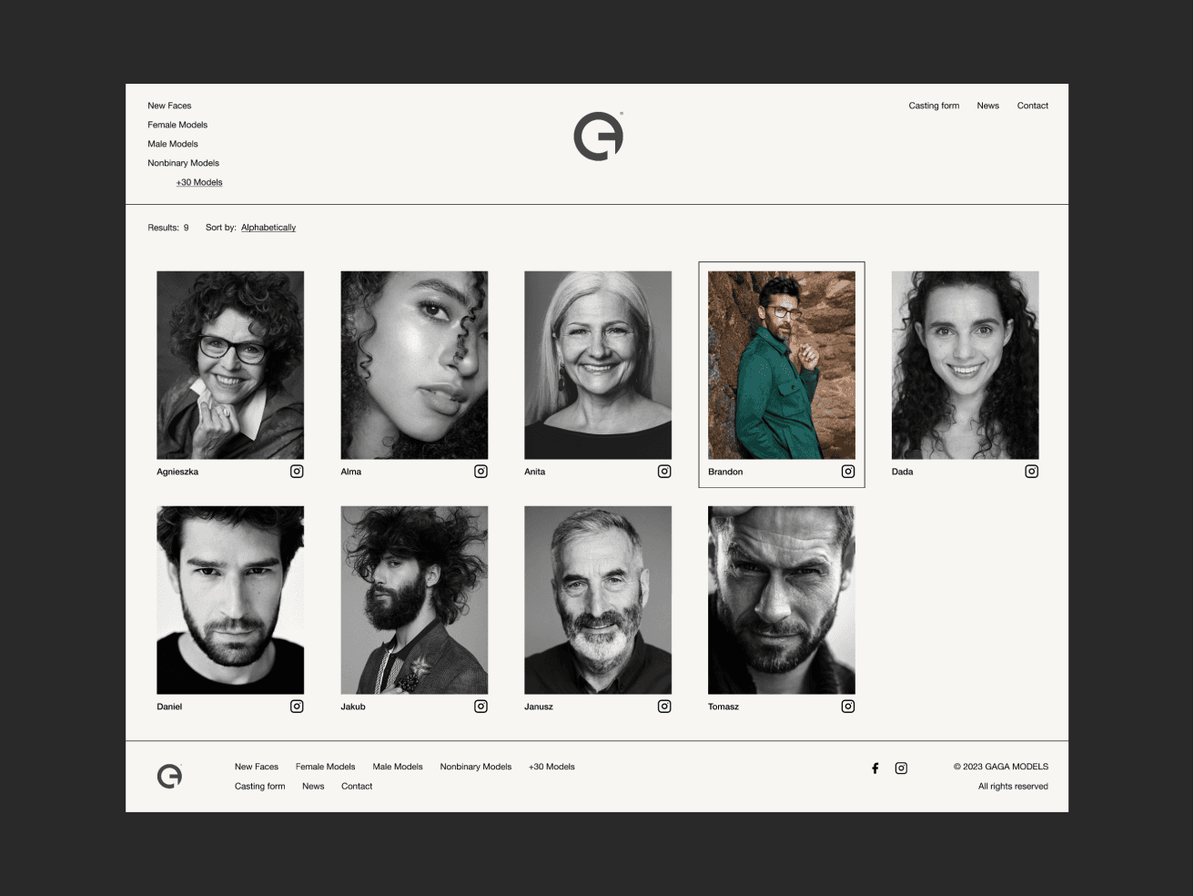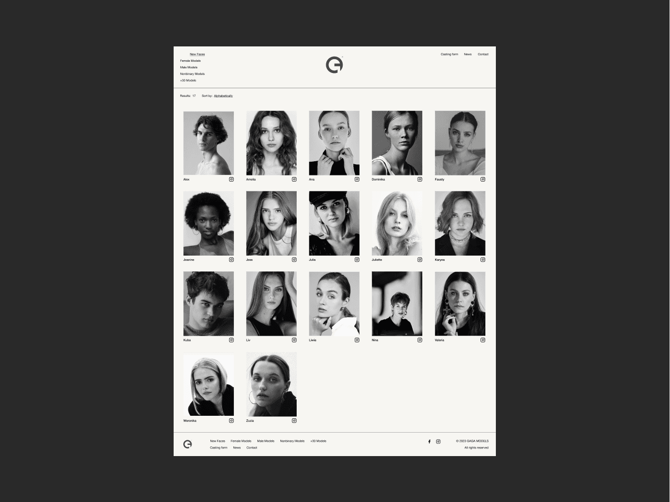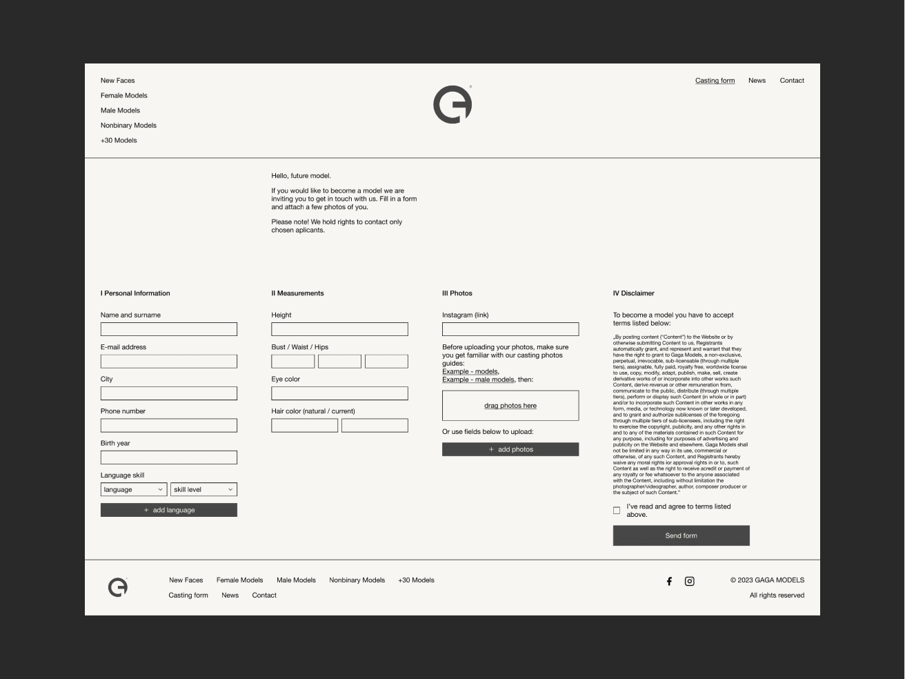 Concept website redesign for Gaga Models