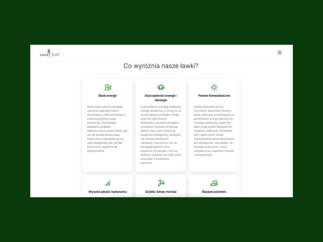 Smart City is a local solar benches producer that I was happy to design and develop my first Framer website for.