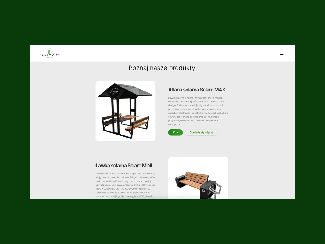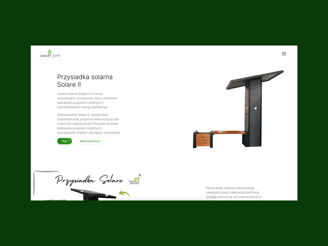 The company manufactures solar-powered benches. The goal of the project was to design a website that distinguishes the brand's sustainable products and presents the advantages of investing in benches for future clients. The website is compatible on desktop screens, tablets and mobile view.